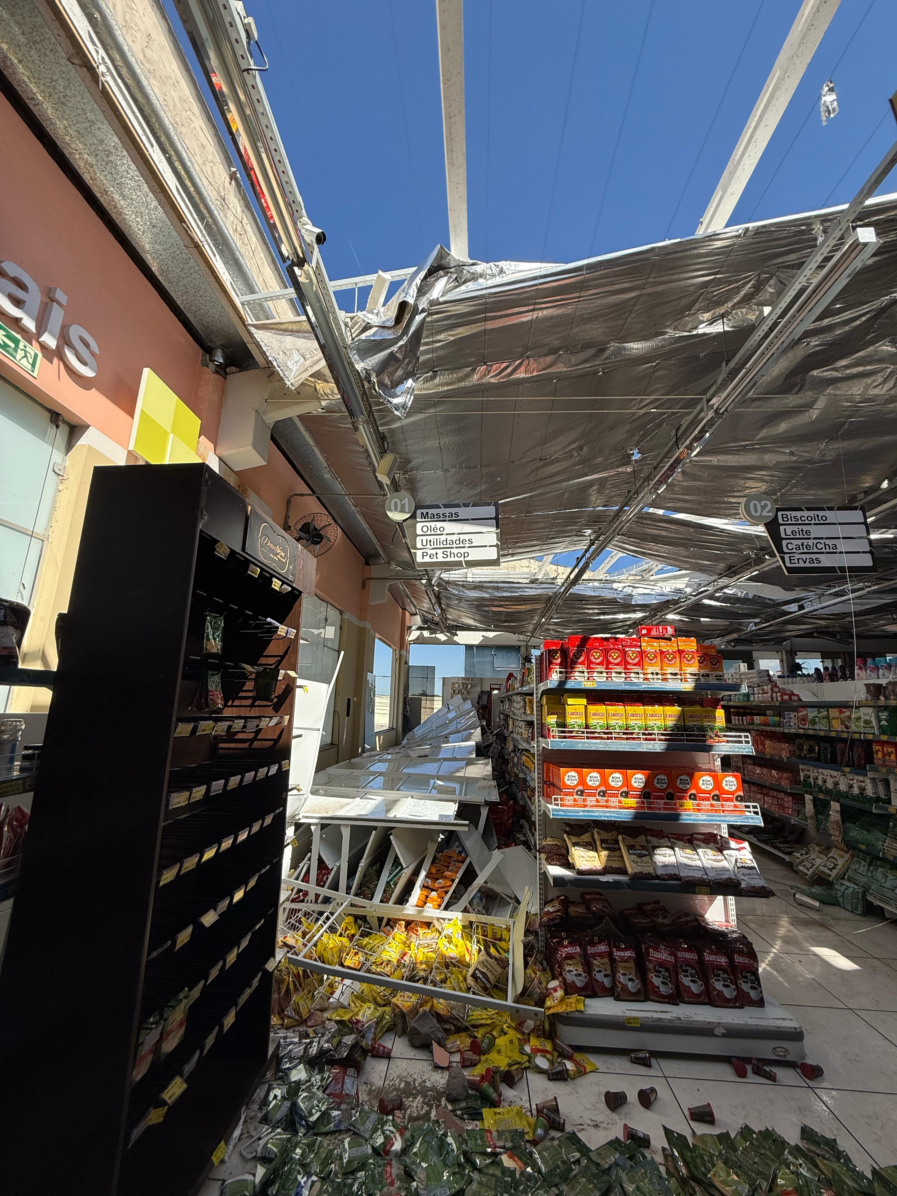 Uma loja ao lado do Terminal de Balsa Nova também foi seriamente atingida, ficando com o telhado retorcido em torno de um poste quebrado. No entorno, árvores também foram atingidas pela tempestade. Pela manhã, máquinas trabalhavam na região e o trânsito estava bloqueado no entorno.