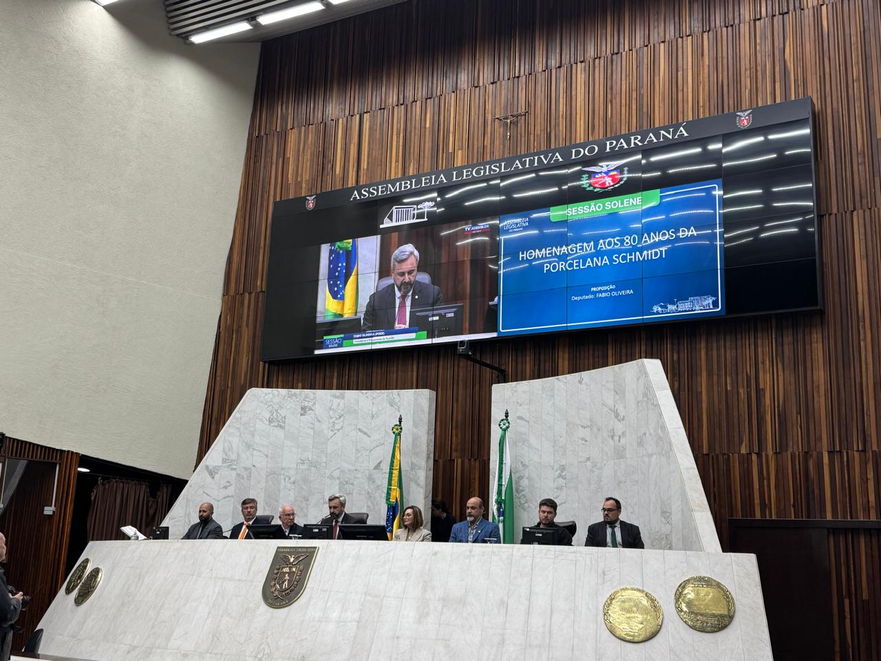 A proposição foi do deputado Fabio Oliveira (Podemos), valorizando a qualidade na produção de porcelanas, as quais estão presentes na mesa e na memória afetiva de milhões de paranaenses, conforme divulgou a imprensa oficial da Alep. “A Porcelana Schmidt é um verdadeiro patrimônio da indústria paranaense. Mais do que produzir louças, ela leva a tradição, a qualidade e a identidade do nosso estado para a mesa de milhões de brasileiros. Essa homenagem é um reconhecimento à sua história, à sua contribuição econômica e ao orgulho que representa para todos nós”, afirmou o deputado.
