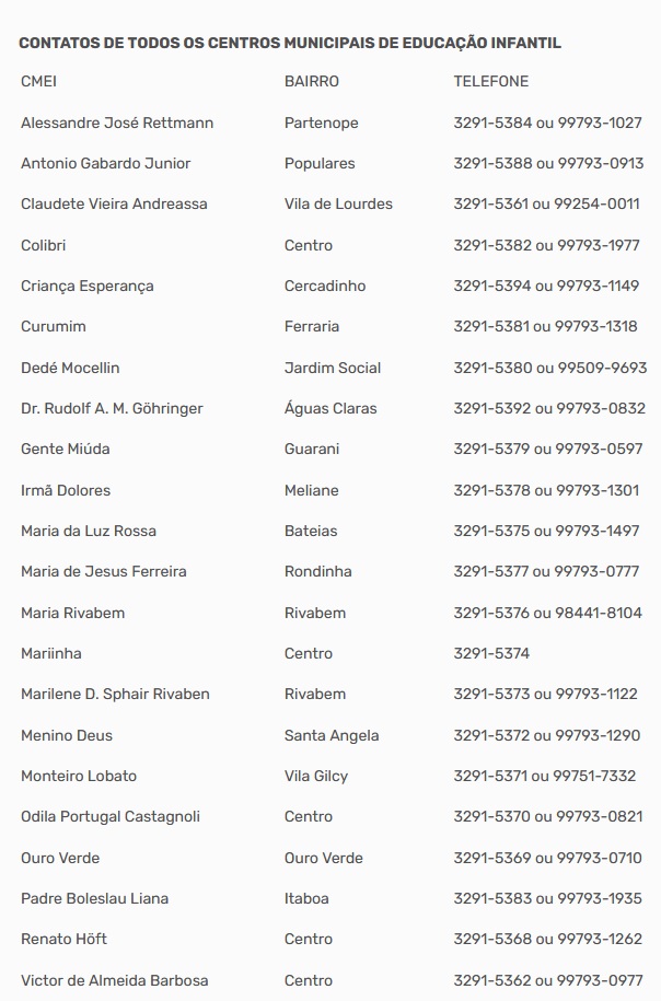 Consulte a classificação para os CMEIs CLICANDO AQUI.