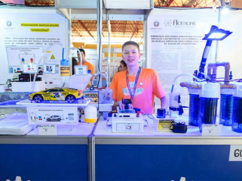 Além do projeto para a NASA, Mateus trabalha em iniciativas voltadas à sustentabilidade, como o uso do hidrogênio verde em motores automotivos, fazendo a combinação dos combustíveis fósseis e água para reduzir emissões de poluentes. A ideia surgiu por meio experimentos realizados com um Voyage 1990, ainda aos 10 anos. “Eu assistia os vídeos do Manual do Mundo e fazia os testes, jogando os parafusos na água, ligando na bateria do carro. Via que borbulhava e joguei um fósforo, quando explodiu. Tinha ali um combustível. Depois de cinco anos de estudo e aprimoramento, criei geradores maiores e vi o potencial para aplicação industrial”, explica.