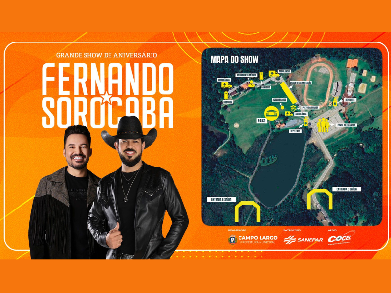 Em 23 de fevereiro, mesmo dia da emancipação política do município, Campo Largo receberá um grande show gratuito, com a dupla sertaneja Fernando & Sorocaba.