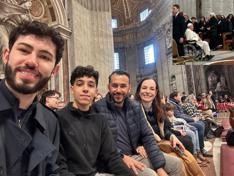 “No dia 26 de janeiro de 2025, estávamos em família no Vaticano e tivemos a graça de participar da celebração da missa na Basílica de São Pedro, presidida pelo Papa Francisco. Ele passou bem próximo a nós, a emoção foi grande, um servo de Deus, cheio do Espírito Santo. Naquele dia sua homilia falou sobre a Palavra de Deus, de como ela é viva, é Deus quem nos fala e cumpre suas promessas porque nos ama. Fomos tocados por sua presença serena e forte ao mesmo tempo. Nos sentimos honrados de ter participado daquele momento tão singular.