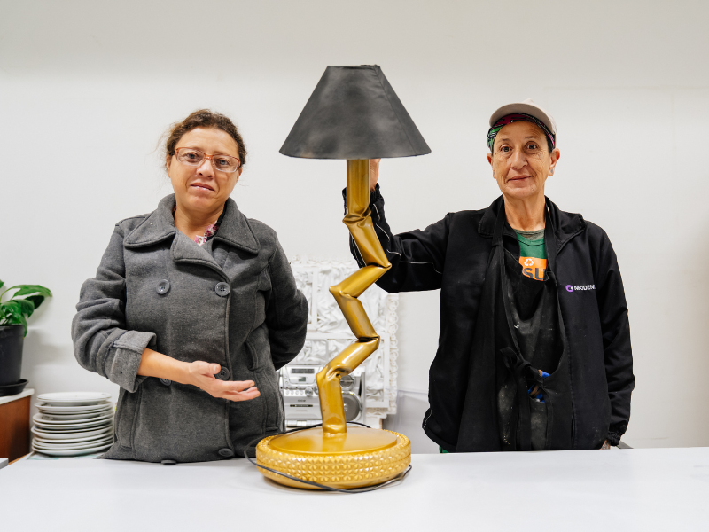 Essa transformação é sentida diretamente por quem vive o dia a dia das cooperativas. Alice Almeida, há dois anos na Associação Unidos da Reciclagem (ASSUR), descreve o projeto como uma virada de chave. “Foi uma luz no fim do túnel para nós. Queremos continuar a fazer aquilo que estamos fazendo, naquilo que aprendemos. É um aprendizado novo a cada dia.” Já Janete Perpétuo, que atua na associação há dez anos, destaca a mudança de visão em relação aos materiais. “Tinha muita coisa boa, mas nós não tínhamos essa noção de fazer algo melhor ou diferente com eles, o que aconteceu depois do projeto.”