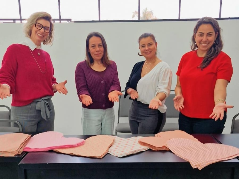 Foram 400 corações cortados, que agora serão costurados e, no final do mês, preenchidos com enchimento de fibra de silicone pela Acicla Mulher, na sede da associação. Este também promete ser um momento único, pois cartas de apoio às mulheres em tratamento serão escritas pelas participantes da ação, sendo entregues junto com as almofadas.