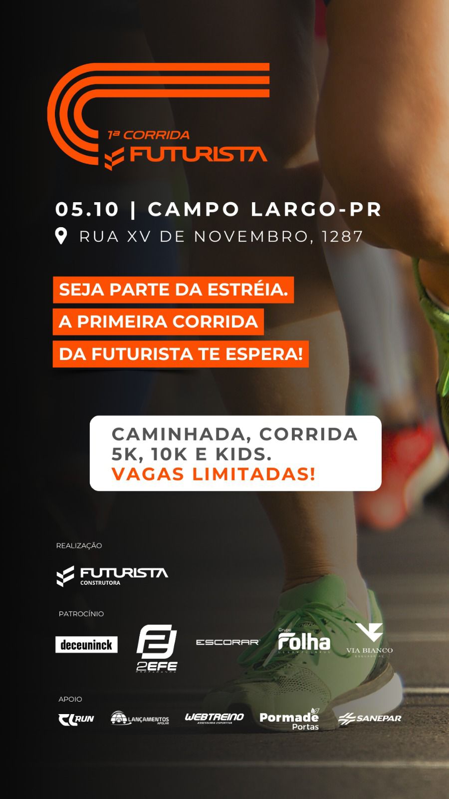 Campo Largo vai viver uma experiência especial no próximo dia 5 de outubro de 2025, com a realização da 1ª Corrida Futurista. O evento busca incentivar hábitos saudáveis, promover a integração entre os moradores e marcar a chegada da Construtora Futurista à cidade, com apoio da Apolar Imóveis.