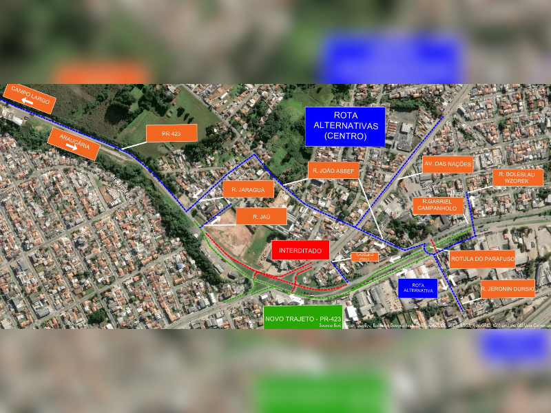 Outra mudança importante é a ligação em nível da PR-423 com a Rua Jaú, além do prolongamento em nível da rotatória do Parafuso, permitindo conexão direta com a Rua Boleslau Wzorek durante o período de obras.